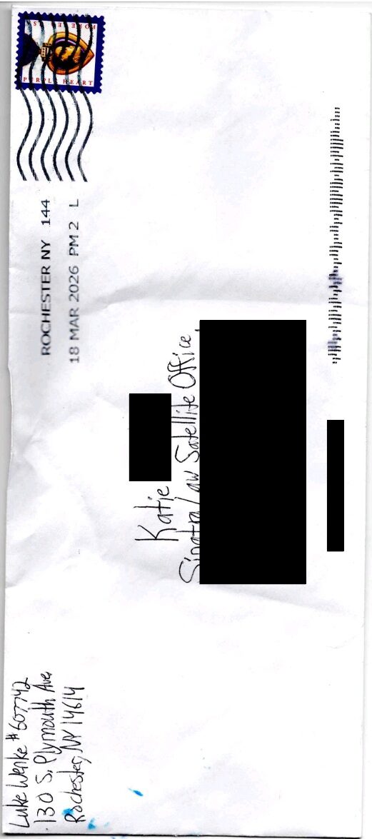 I received this disturbing letter from Luke Wenke, who’s currently detained at the Monroe County Jail in Rochester, New York, on March 21st, 2026. In it, Wenke: