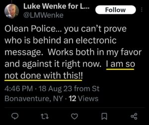 Categories: Luke Wenke, False Allegations: wrongful conviction/incarceration; Obsessions: Carl Paladino obsession, Katie Obsession, Ryan/Benjamin obsession; screenshots, social media posts, Threats: escalation, reputation damage, threats to sue