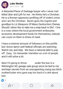 Categories: Luke Wenke, False Allegations: wrongful conviction/incarceration; Obsessions: Carl Paladino obsession, Katie Obsession, Ryan/Benjamin obsession; screenshots, social media posts, Threats: escalation, false reviews, reputation damage, threats to sue