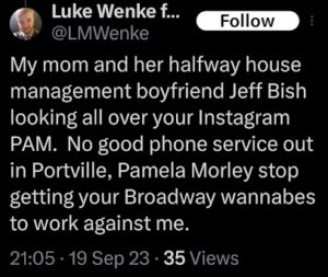 Luke Wenke recently claimed in a letter to the federal courthouse in Buffalo that I’m “under” a cease and desist order administered by his mother. This is untrue, as I have not been served with a cease and desist order. I’ve moved multiple times since Wenke and his mommy last knew my address, including to another country.