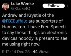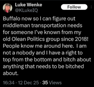 luke wenke twitter x screenshot antipolice 2025 olean cattaraugus county