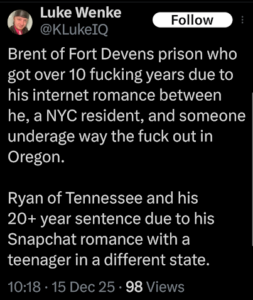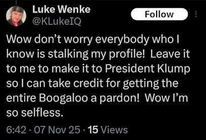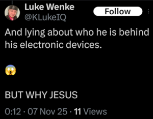 screenshot of a perverted luke wenke x/twitter post november 2025
