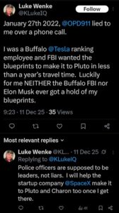 luke wenke x twitter screenshot threats to sue olean police department 2025