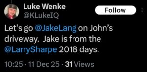 luke wenke x twitter screenshot talk shit family 2025