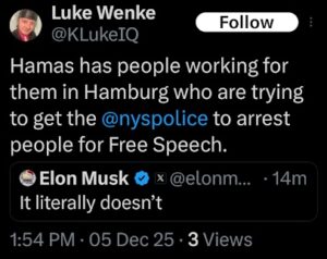 NOTE: In the weeks leading up to his most recent arrest on 12/17/2025, Luke Wenke used “Hamas” as a code word for several of his victims including myself, Ryan (his romantic obsession), and the Minnesota attorney he served prison time for cyberstalking. I believe that Wenke’s use of the term “Israeli Army” is a reference to a theoretical paid assassin (i.e. a hitman).