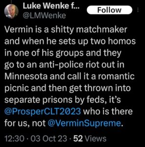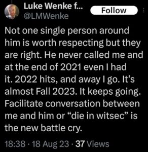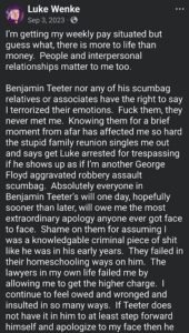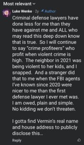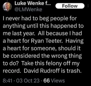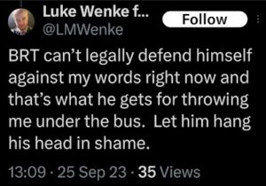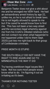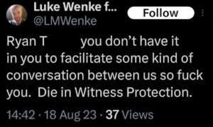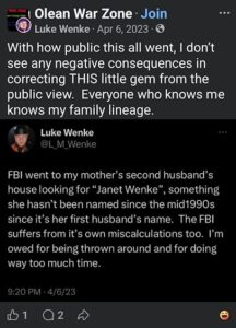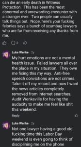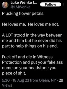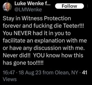 Categories: Luke Wenke, drugs, False Allegations: human rights violations; Obsessions: Carl Paladino obsession, Katie Obsession, Ryan/Benjamin obsession; screenshots, social media posts, Threats: escalation, reputation damage, threats to sue