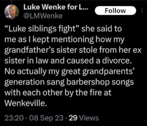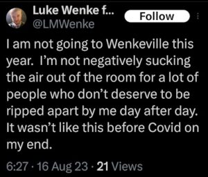 Categories: Luke Wenke, drugs, False Allegations: financial crimes, theft/robbery; screenshots, social media posts, Threats: threats to sue